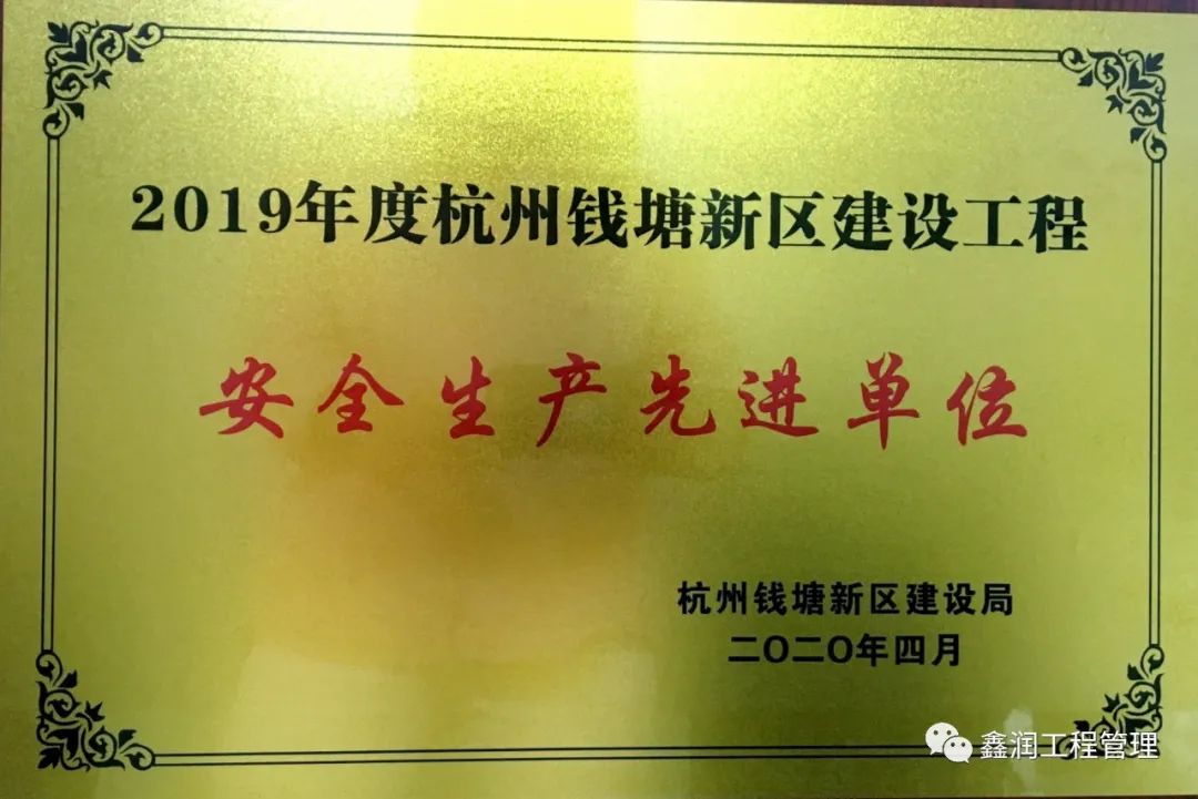安全工作永遠在路上!浙江鑫潤榮獲2019年度錢塘新區(qū)安全生產(chǎn)先進單位!