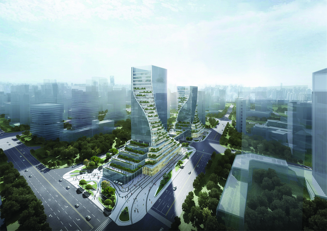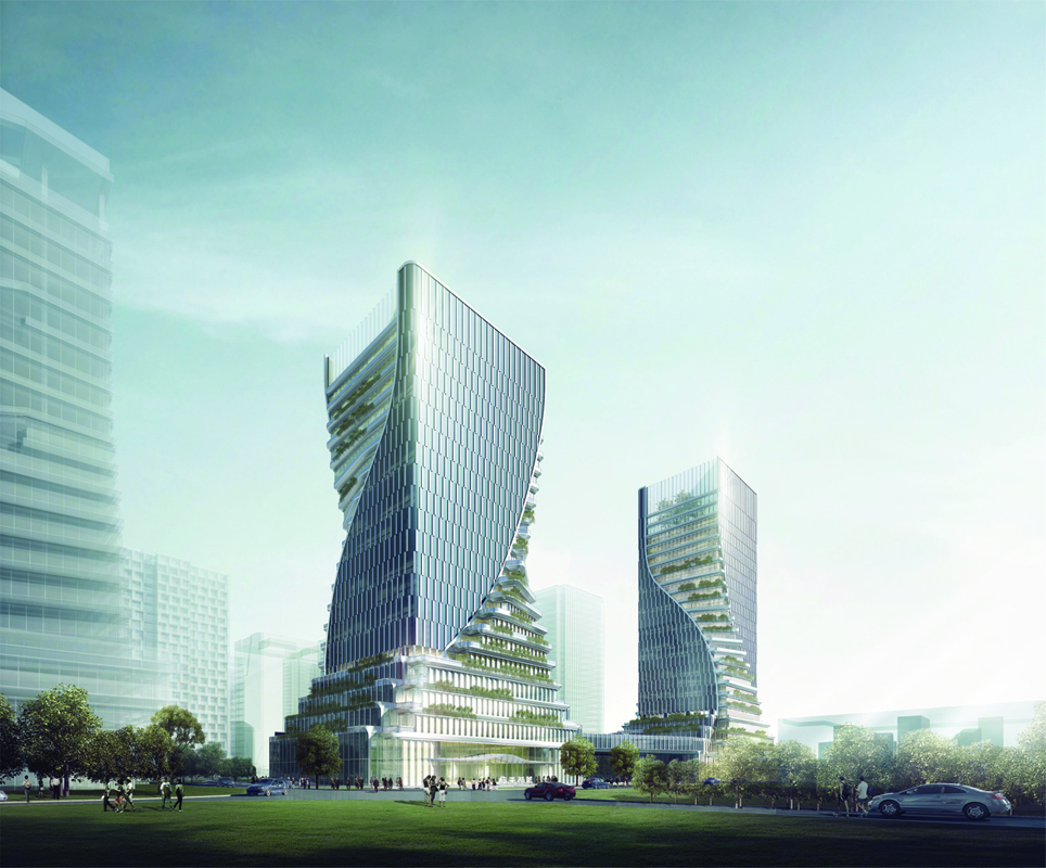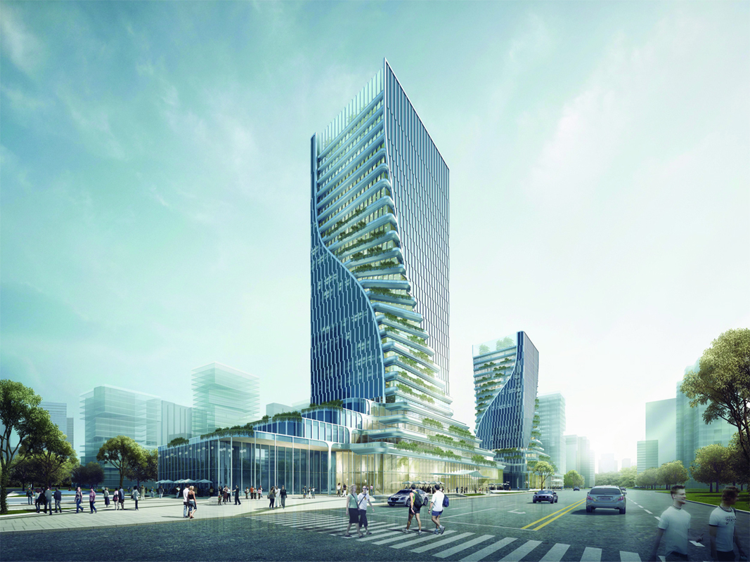 47號地塊建筑由1幢辦公樓組成,共23層,其中地下室2層,建筑高度99.95m;48號地塊建筑由1幢辦公樓組成,共21層,其中地下室2層,建筑高度92.15m。該工程高層建筑物樓均為框架-核心筒結構,裙房為框架結構。工程采用樁基礎(鉆孔灌注樁)。
